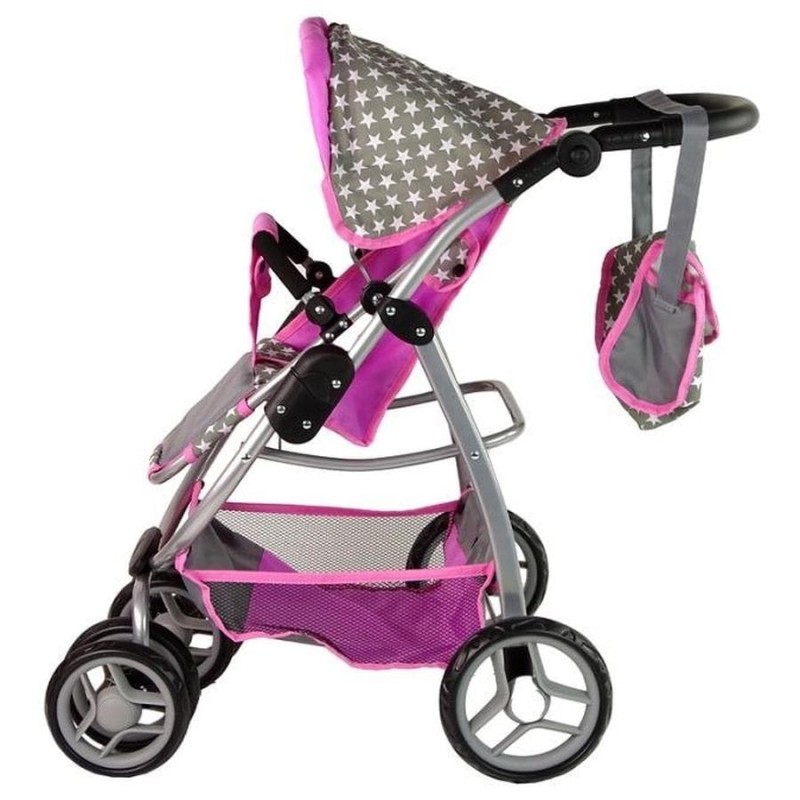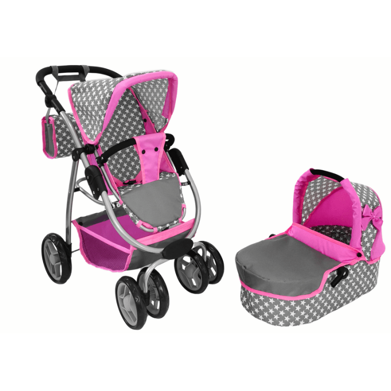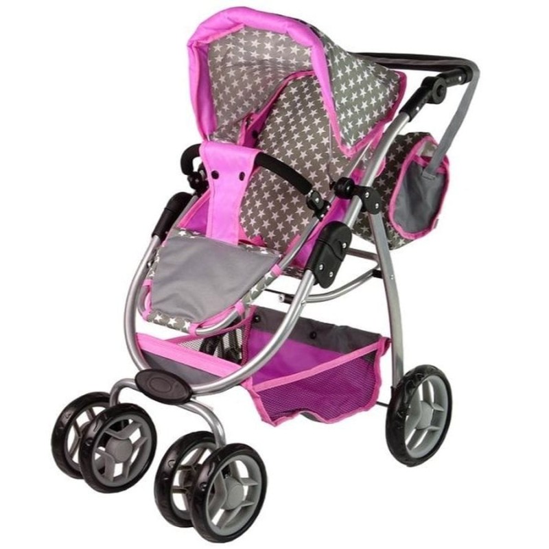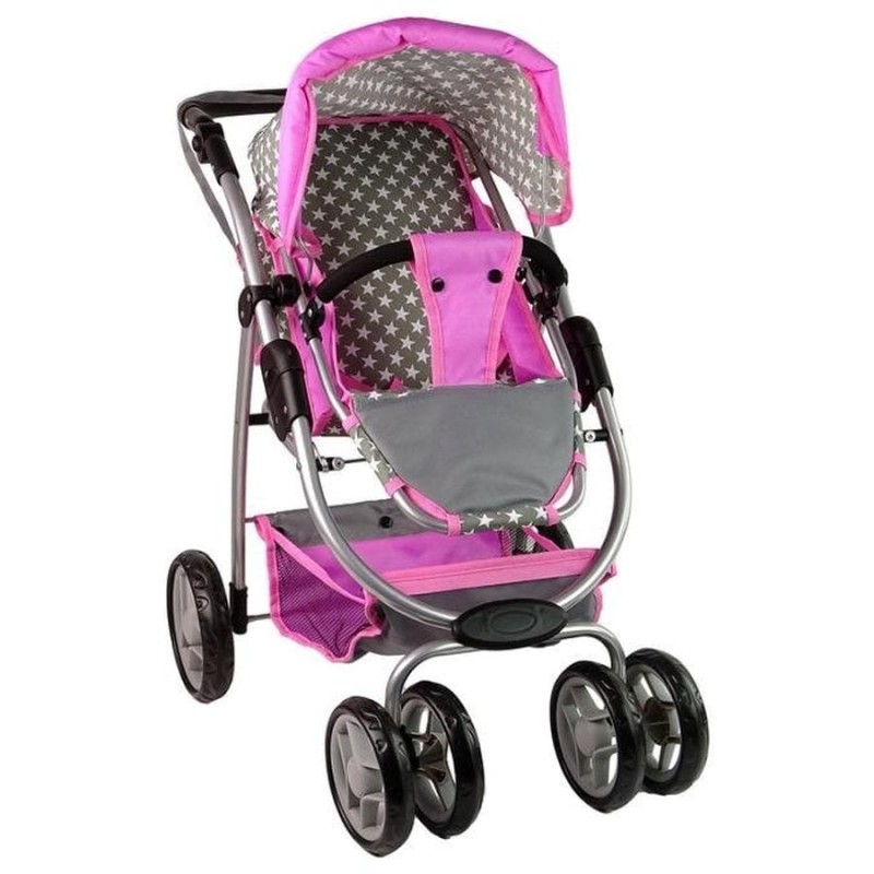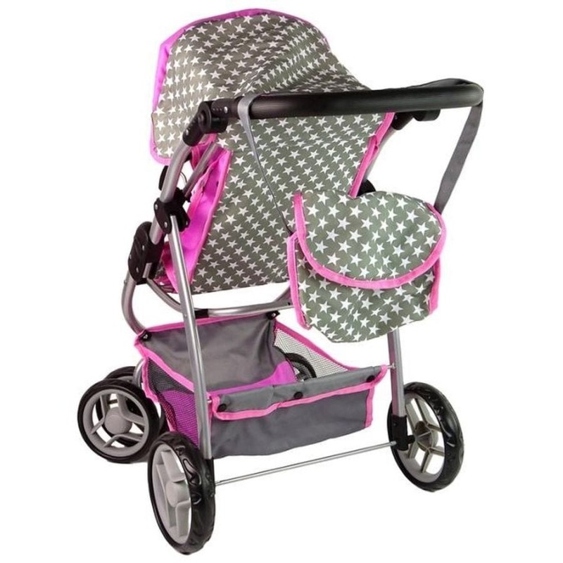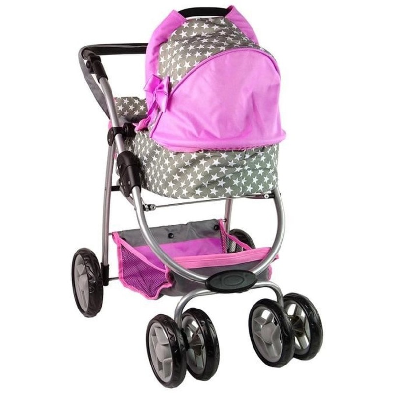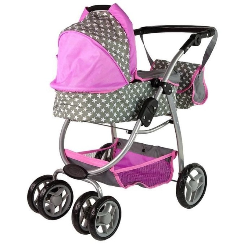 Кукольная коляска коляска 2в1 люлька сумка розовые звезды