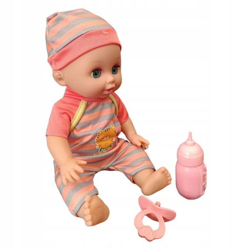 Оснащен звуковым модулем, активируемым кнопкой на животе, позволяющим воспроизводить такие звуки, как" мама"," папа"," папа", смех, плач, кашель, зевание и поцелуи.