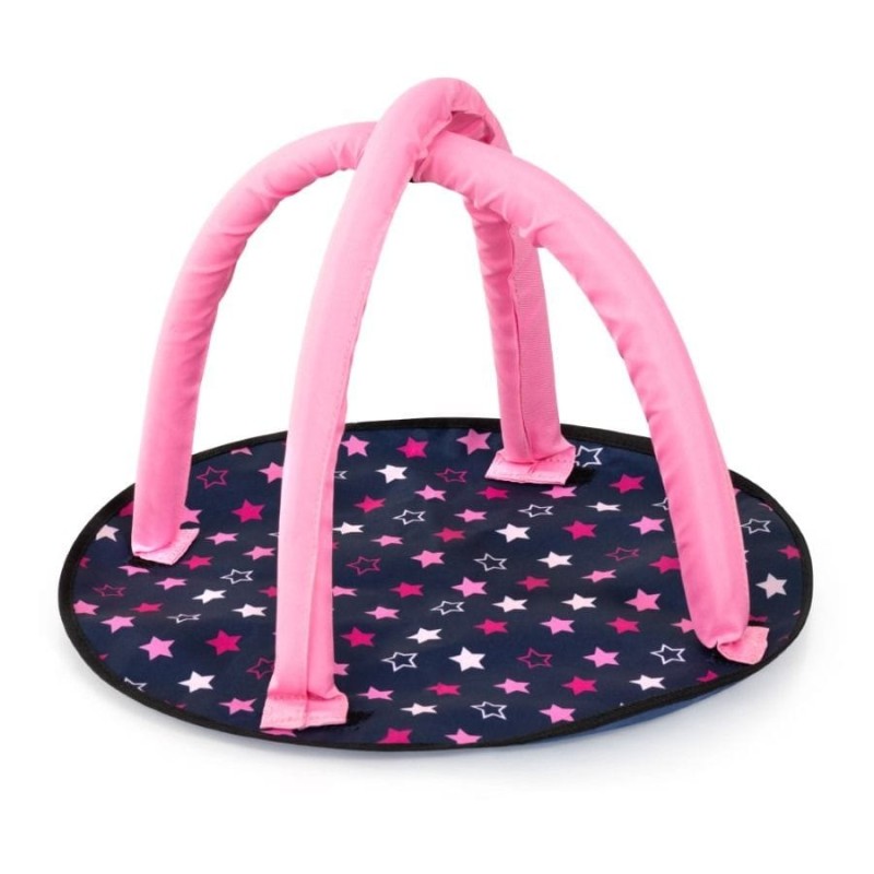 Благодаря прилагаемым защелкам и возможной смене палача переносной кроватки Кукольная коляска может быть превращена в коляску за считанные секунды. Поворотные передние колеса гарантируют стабильное прохождение поворотов.