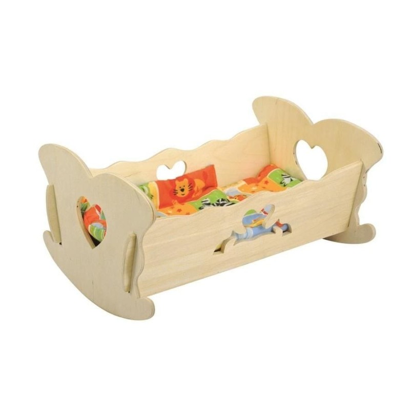 Маленькая колыбель не только отличается необычным внешним видом и формой, но и изготовлена из экологически чистого дерева. Отсутствие острых краев делает его идеальной игрушкой для маленьких и больших девочек.