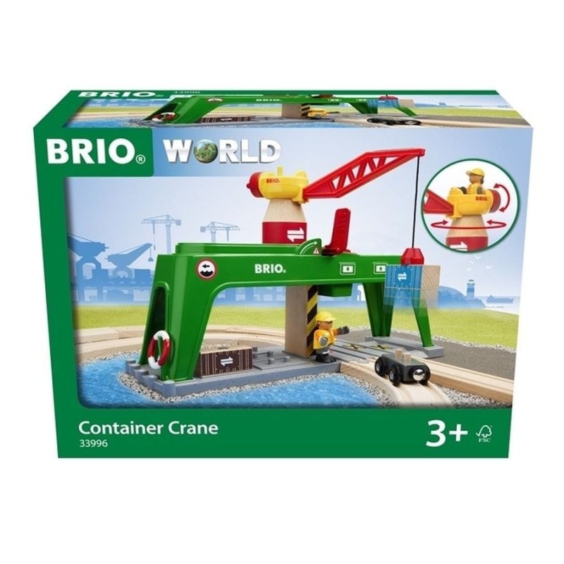 BRIO контейнерный кран Номер детали: 33996 управление всеми тяжелыми контейнерами BRIO World не является проблемой с контейнерным краном. Сядьте на этот большой удобный кран и приступайте к работе. Возьмите один из контейнеров с помощью магнитного крючка, затем поверните и переместите кран на место над дорожками. Немного влево, немного вправо. Отлично! Опустите деревянный груз на место с помощью лебедки и зафиксируйте его красной крышкой, прежде чем он идеально упадет на ожидающий ниже вагон.