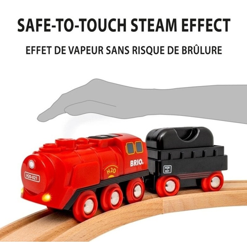 Очередь, которую вы найдете в наборе, - потрясающая модель, которая на самом деле выпускает пар! Просто налейте в нее воду и нажмите кнопку. Благодаря специальному мотору с батарейным питанием сразу появляется водяной пар, напоминающий настоящий:)