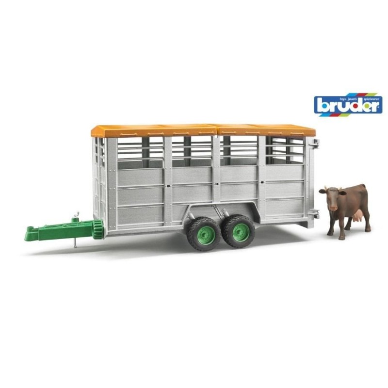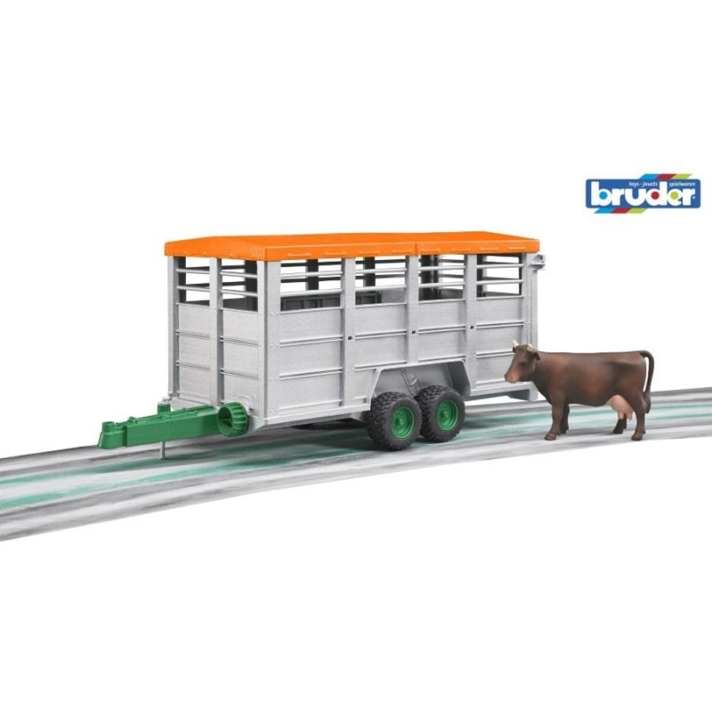 Bruder, 2-осевой прицеп для перевозки коров с фигуркой коровы