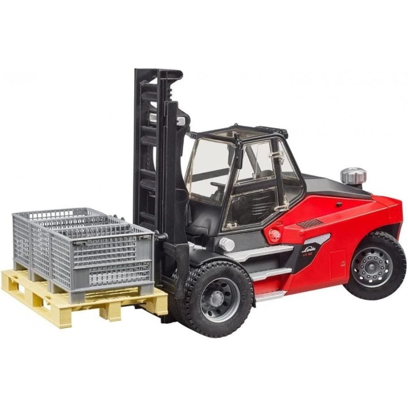 Bruder, Linde, вилочный погрузчик с поддоном и корзиной