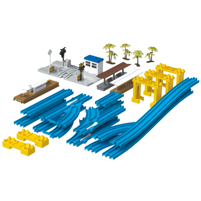 • Огромный набор аксессуаров Dumica, состоящий из 72 элементов, включая железнодорожные пути, ландшафтные элементы, железнодорожный переезд и зал ожидания.