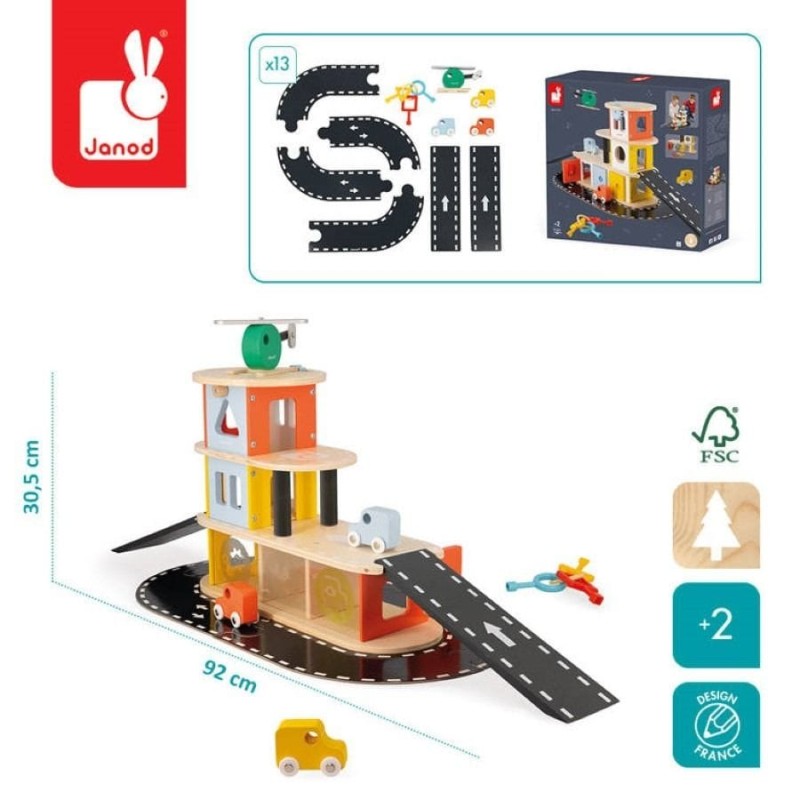 • Деревянный двухэтажный гараж из серии болид французского бренда JANOD-идеальный подарок для любого ребенка.