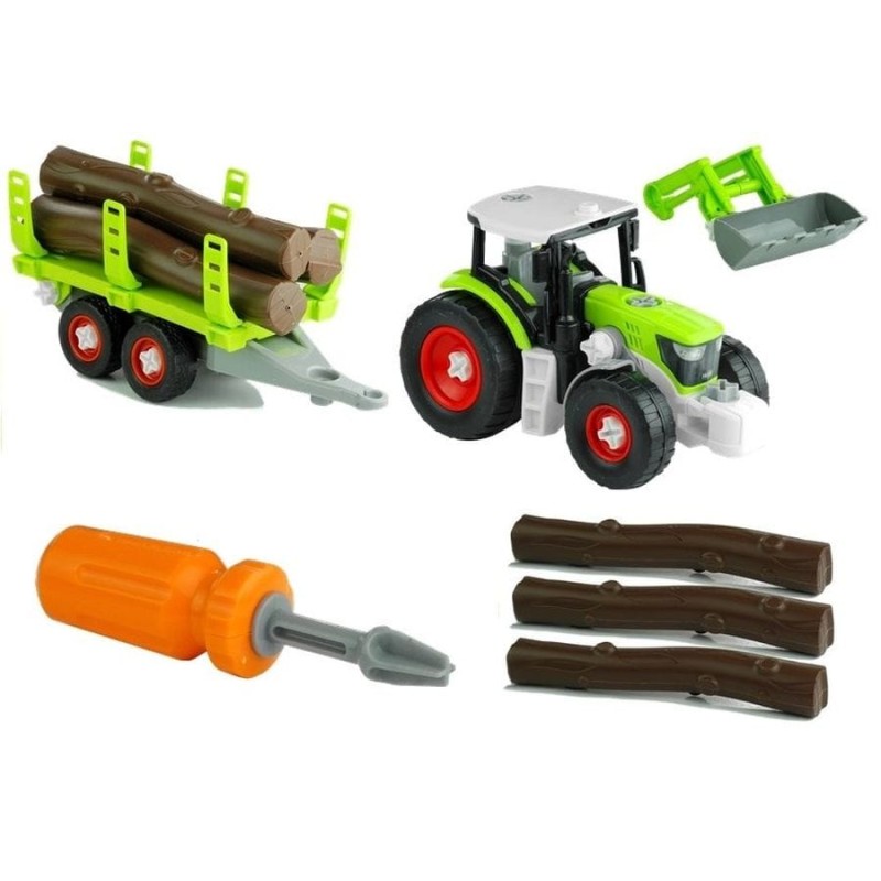 • Набор для маленького DIY он состоит из отвертки, винтов, трактора, прицепа, дерева и копающего рычага.