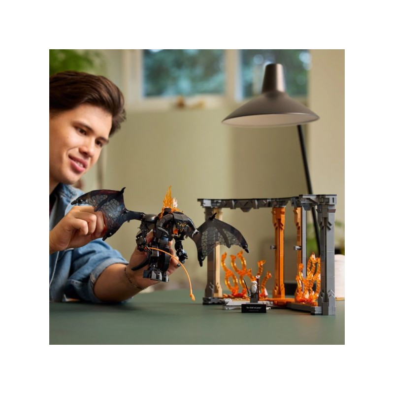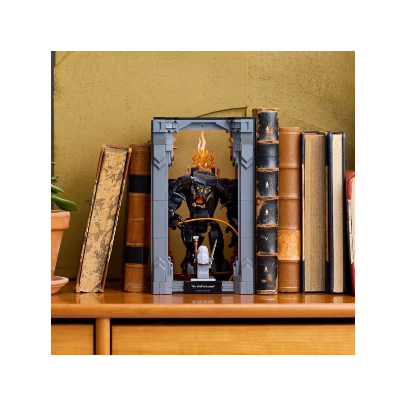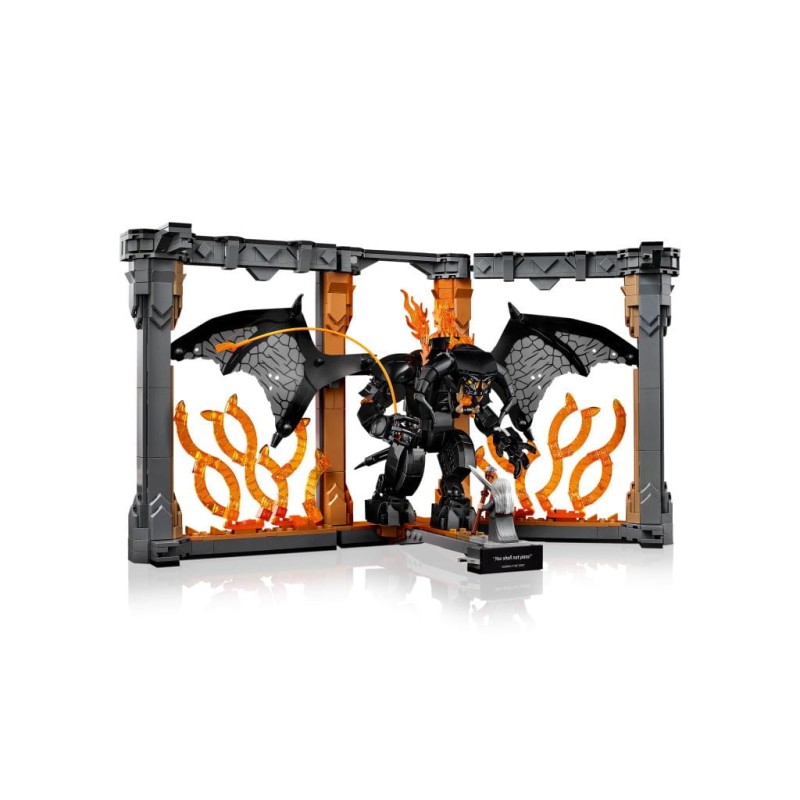 Модель с табличкой с надписью «You Shall Not Pass» изображает Гэндальфа Серого в бесстрашной позе и Балрога с его мощными крыльями, расправленными на фоне пламени. Обе фигурки съемные, а минифигурка Гэндальфа идет с посохом и мечом, в то время как фигурка Балрога вооружена огненным кнутом и имеет подвижные конечности и крылья для динамической демонстрации.