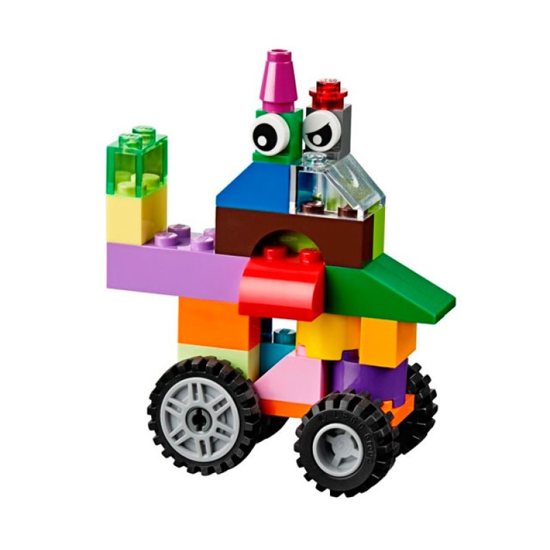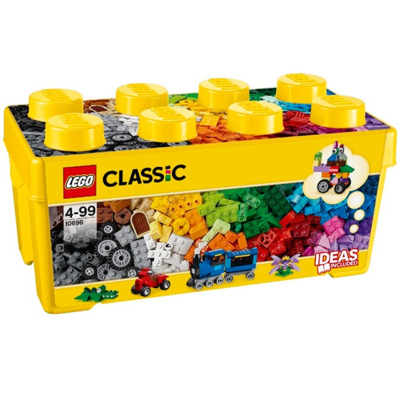 Набор для творчества среднего размера, 10696 лего классик. Отличный набор для начала конструирования кубиками Lego! Используйте книжку с идеями для создания вещей из повседневной жизни. Постройте паровоз или машинки. Здания и зверюшек - нет проблем! В наборе кубики 35 различных цветов. В комплекте 18 колес для постройки одновременно нескольких машинок. Постройте здания! Хотите разнообразить игру - соберите забавных зверюшек с веселыми глазками!