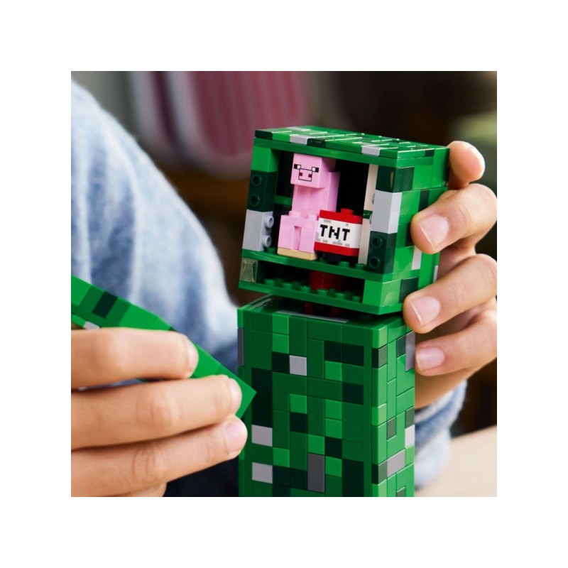 • Набор из 665 деталей — реплика LEGO Creeper из Minecraft высотой 21 см