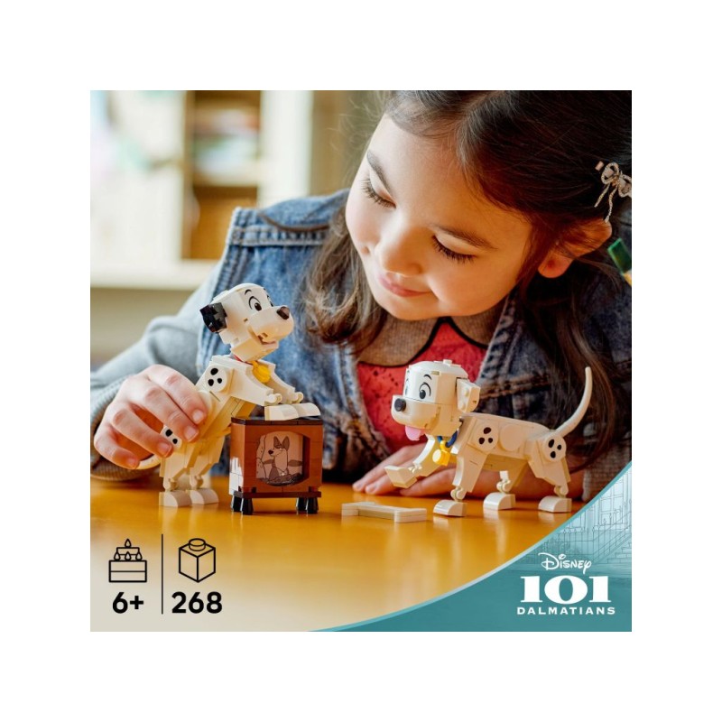 Порадуйте детей и любителей животных в возрасте от шести лет игровым набором LEGO Disney «101 далматинец — щенки Лаки и Пенни» (43271). В набор входят две фигурки далматинцев из классического фильма Disney «101 далматинец», а также игровая кость и небольшой телевизор. Фигурки щенков LEGO Disney имеют подвижные головы, ноги и хвосты, и им можно придавать различные позы.