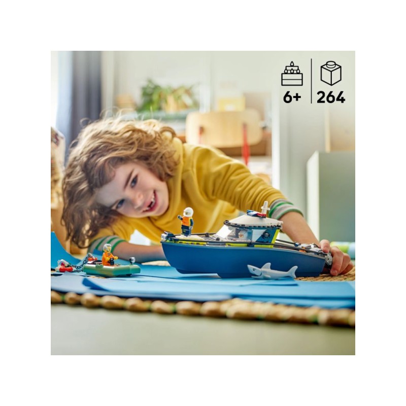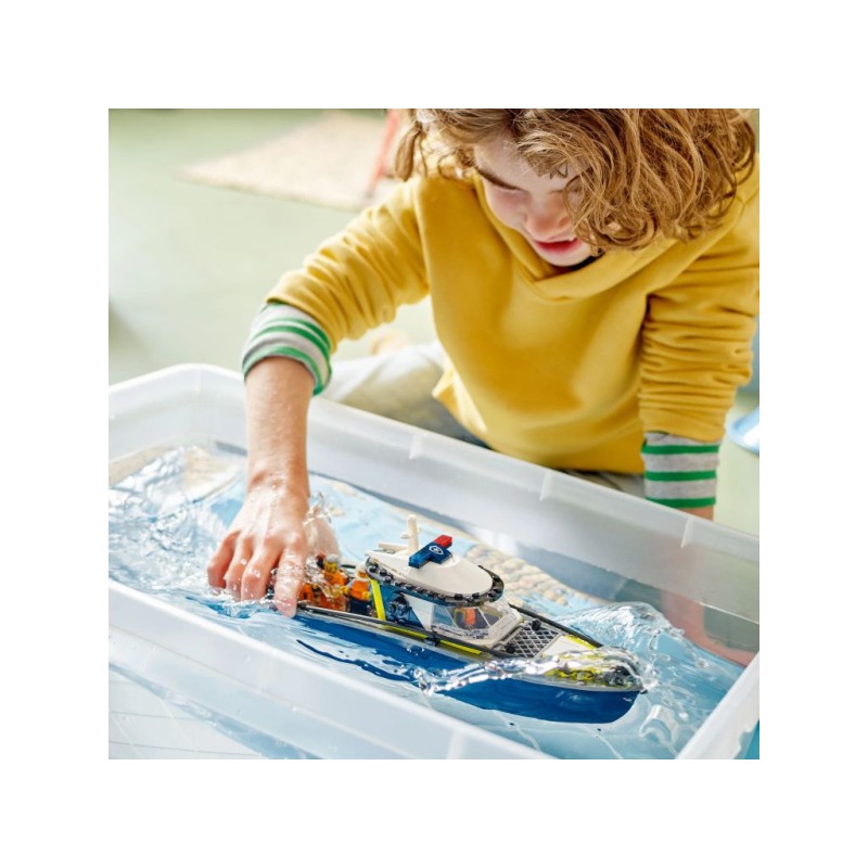 • Погоня на полицейской лодке для маленьких героев — дети от 6 лет могут окунуться в море приключений и преследовать преступников с набором LEGO City «Погоня на полицейской лодке».