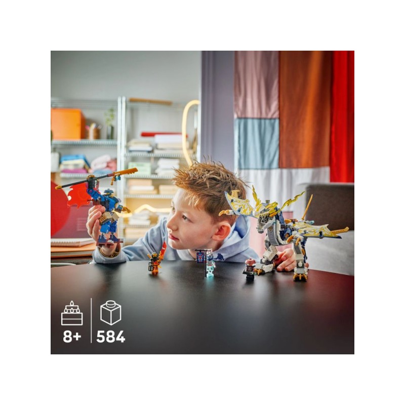 Дети могут прикрепить роботов из набора Kai's Storm Rider Mech (71830) и Kai's Mech Rider EVO (71783) (каждый продается отдельно) к задней части фигурки дракона из этого набора. Набор можно собрать с помощью приложения LEGO Builder, которое проведет вас и вашего ребенка через все этапы строительства. В наборе 584 детали.