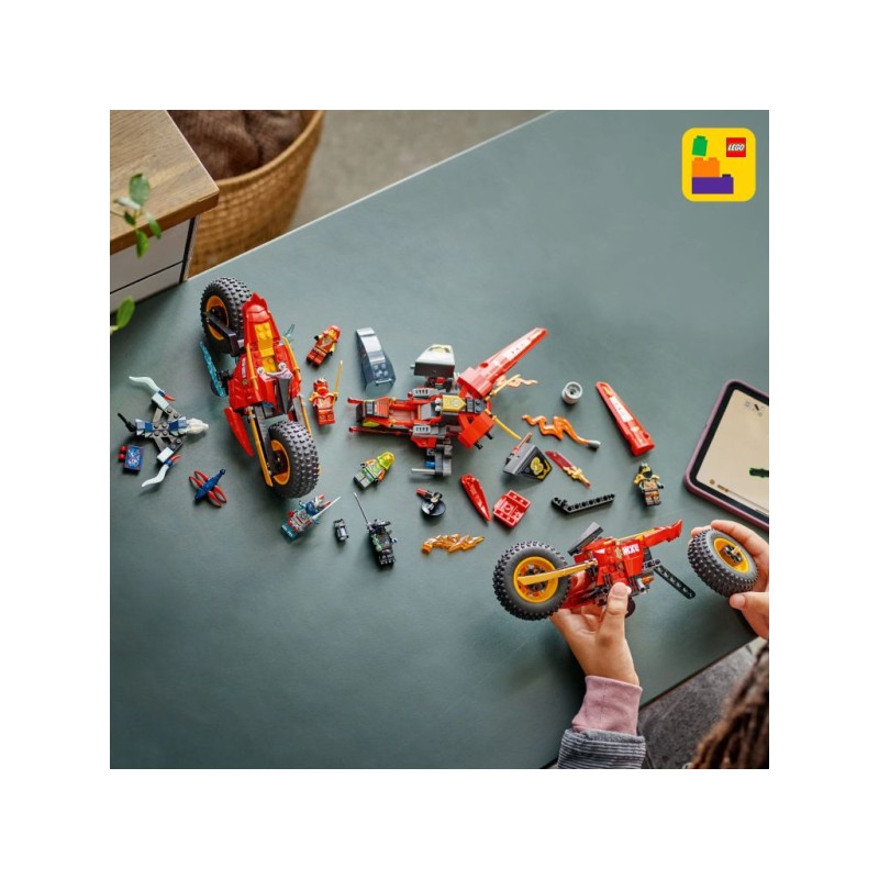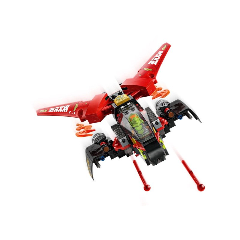 • Складная машина ниндзя — большую машину NINJAGO можно разложить на три машины поменьше: мотоцикл Кая, мотоцикл Уайлдфира и самолет Фрака с двойными шипованными шутерами.