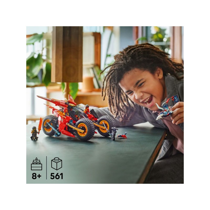 Дети в возрасте от 8 лет и старше могут воссоздать сцены из третьего сезона телесериала NINJAGO Rise of the Dragons с помощью игрового набора 3-в-1 «Боевой багги ниндзя» (71844). Поиграв с большим мотоциклом, ниндзя могут разделить его на три меньших транспортных средства: мотоцикл Кая, мотоцикл Уайлдфайра и реактивный самолет Фрака с двойными шипованными шутерами.