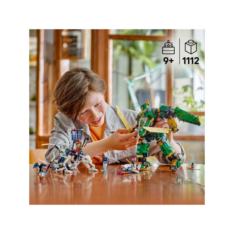 • Игрушка ниндзя для детей — мальчики и девочки в возрасте от девяти лет и старше могут воссоздать сцены из третьего сезона телесериала NINJAGO Rise of the Dragons с помощью реактивного робота Ллойда.