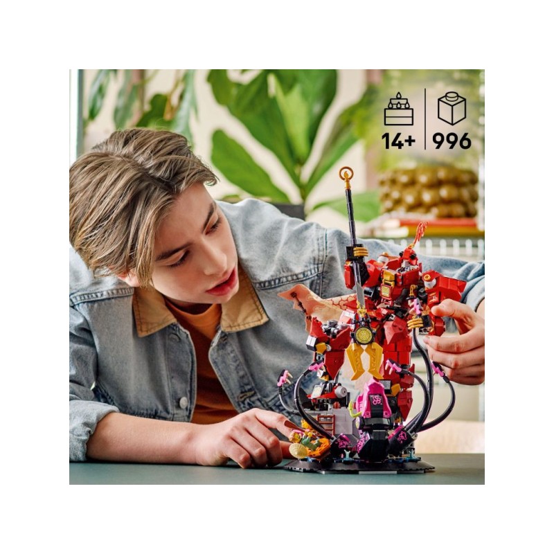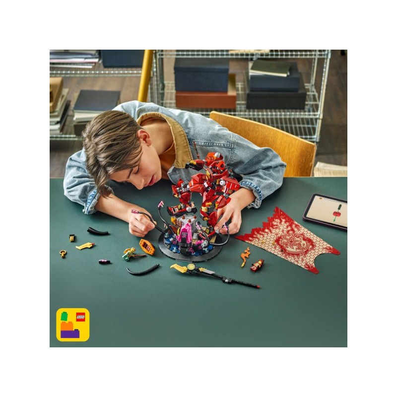 Другие наборы LEGO NINJAGO (продаются отдельно) включают в себя роботов, транспортные средства и храмы, чтобы фанаты могли разыгрывать истории со своими героями. Каждую фантастическую игрушку можно создать с помощью приложения LEGO Builder, которое проведет детей через простое и интуитивно понятное приключение по сборке. В наборе 996 деталей.
