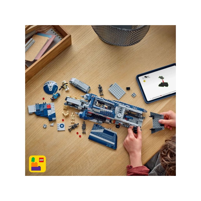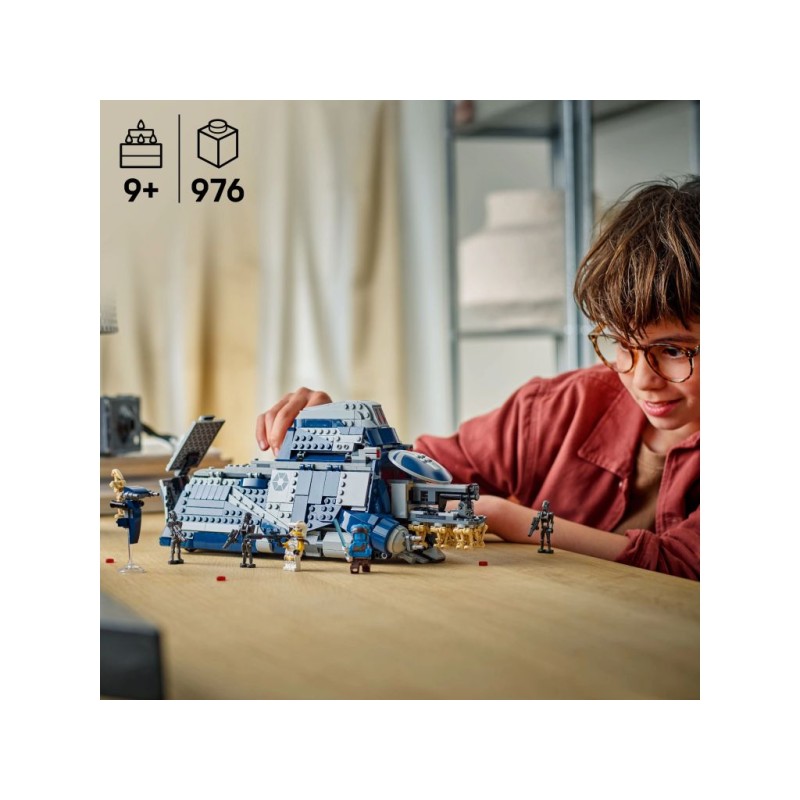 • Соберите и покажите — сборная модель транспортного средства из этого набора LEGO Star Wars, состоящего из 976 деталей, имеет размеры 15 см в высоту, 29 см в длину и 13 см в ширину.