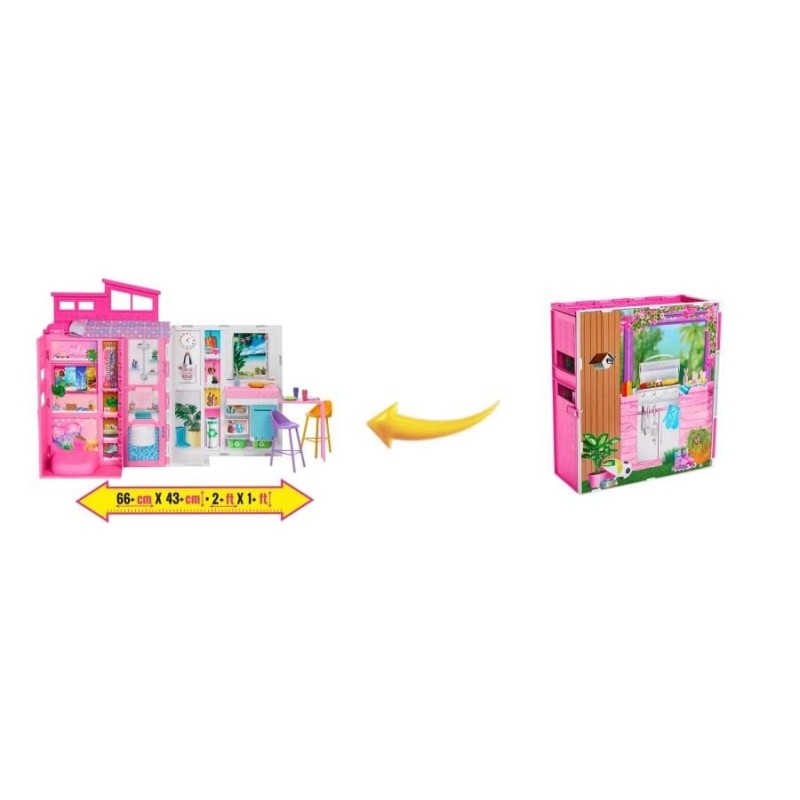 Этот красочный складной кукольный домик Барби вдохновляет на часы веселья и приключенческих историй. Полюбуйтесь четырьмя игровыми зонами - кухней, ванной комнатой, спальней наверху и уголком фильма-и очаровательными аксессуарами для домашнего декора.