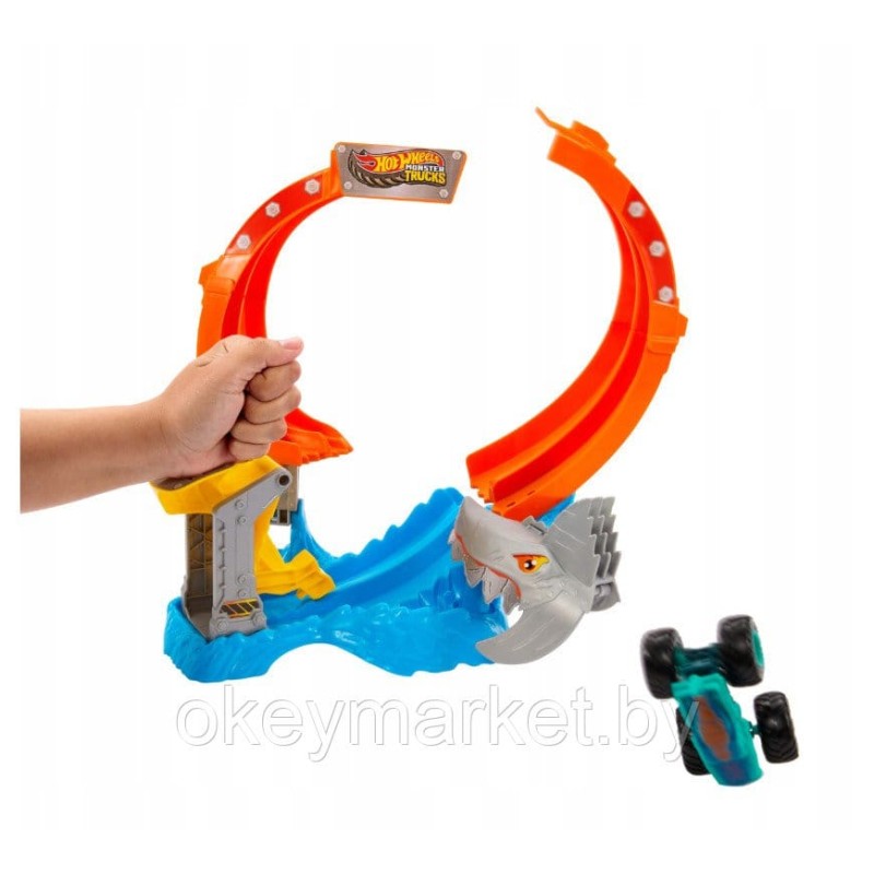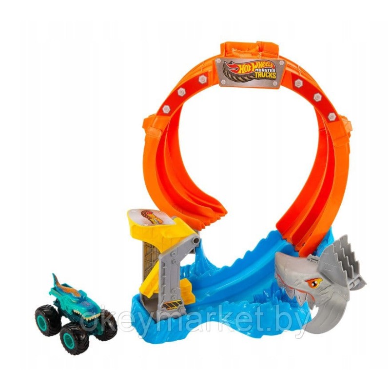 Hot Wheels Monster Trucks - Гоночная трасса Shark Loop голодный хищник + авто - Хот Вилс JFR08