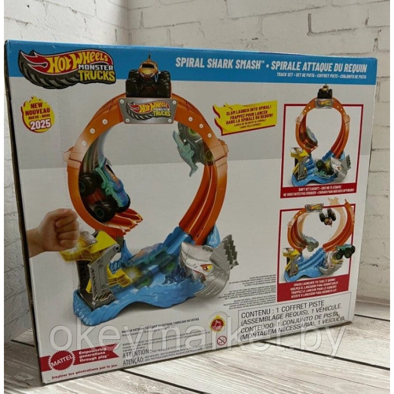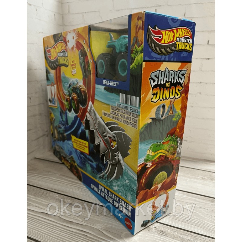 В игровом наборе Hot Wheels Monster Trucks Shark Loop голодный хищник поджидает, чтобы «перекусить» Мега-Рексом, но эпические трюки и безрассудное вождение могут помочь победить врага и дать Monster Truck шанс скрыться.