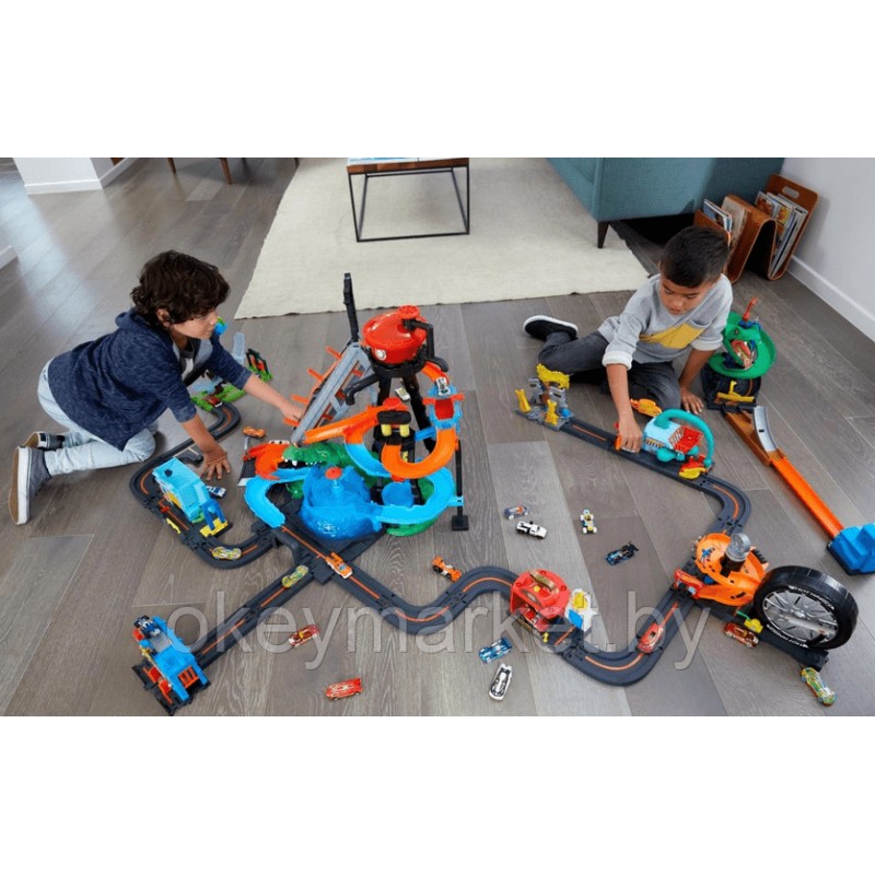 Новый игровой набор “Невообразимая автомойка” Hot Wheels - это настоящее захватывающее приключение! Здесь можно не только помыть игрушечные автомобили, но и прокатиться с ветерком по большой и увлекательной гоночной трассе. Специальный подъемник доставит автомобиль к месту старта. А дальше начинается веселая гонка!