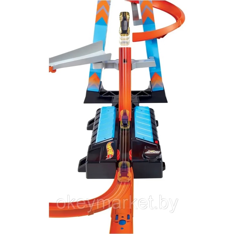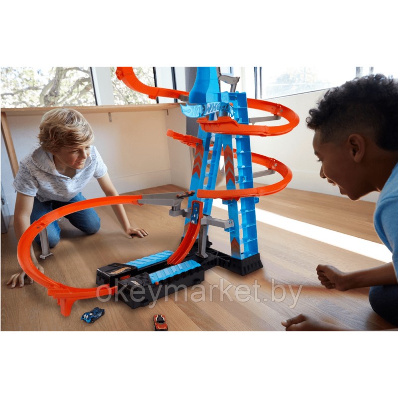 Испытайте восторг от максимального ускорения с невероятным гоночным набором “Небесное столкновение” от  Hot Wheels! Крутая башня высотой более 83 см поразит ваше воображение. Поднимите свою машинку на головокружительную высоту и  устройте зрелищные гонки с крутыми виражами и эффектными столкновениями! Моторизованный ускоритель обеспечит выполнение самых сложных трюков. На опоре башни одновременно можно припарковать более 20 автомобилей. Запустите несколько машинок по очереди и наблюдайте, как они едут по серпантину и сталкиваются друг с другом. Игровой набор Hot Wheels создан для эпичных гоночных приключений!