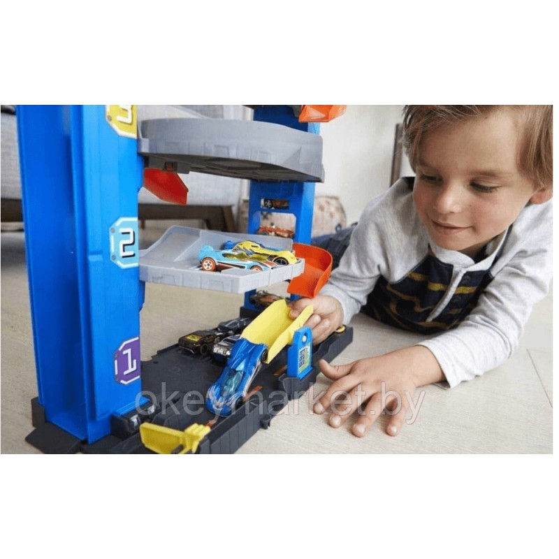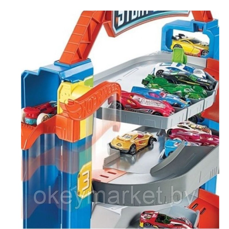 Этот четырехэтажный гараж Hot Wheels прекрасно подойдет для хранения более 20 машинок! Поднимай или спускай машины на любой из 4 уровней, чтобы припарковать их. Устраивай безумные заезды запускай машины вниз спиральным спуском, чтобы быстро добраться нижнего этажа, где можно заправить или проверить машинки перед следующими гонками. Гараж удобно транспортировать, ведь он оснащен специальной переносной ручкой и имеет компактный размер.