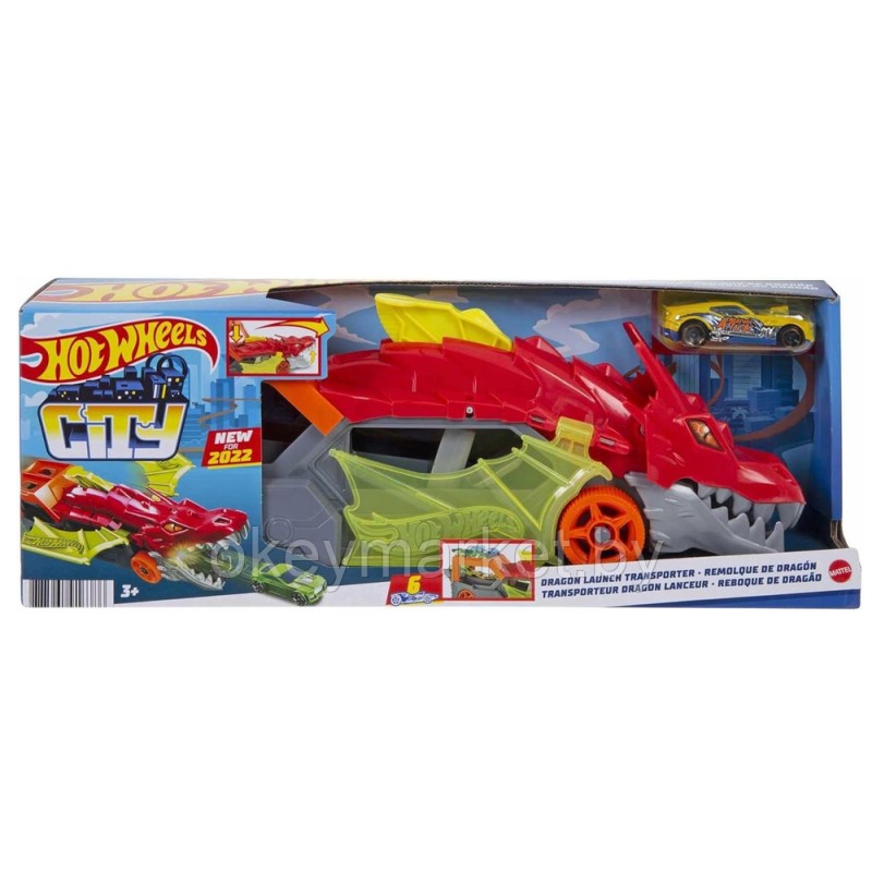 Игрушечный трек Hot Wheels City - Мега-транспортер Хот Вилс Дракон + 1 автомобиль в комплекте GKT42