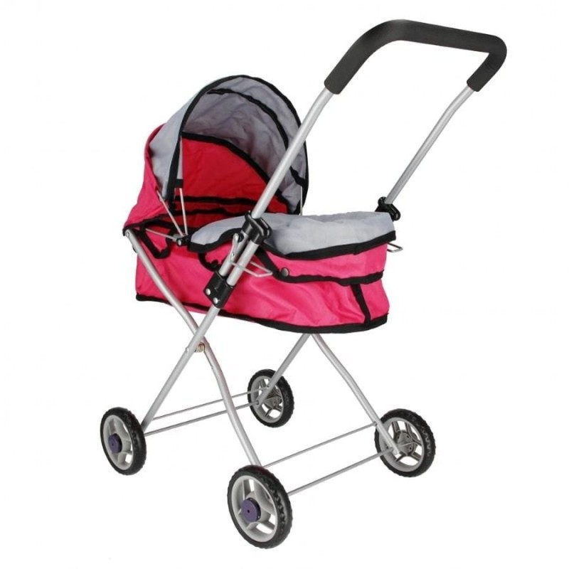 Коляска, изготовленная из металла, пластика и материала, выглядит как настоящая детская коляска что позволит вашему ребенку почувствовать себя родителем и позаботиться о своей любимой кукле, имеет пластиковые колеса, складную коляску, удобную ручку, тканевый защитный чехол.