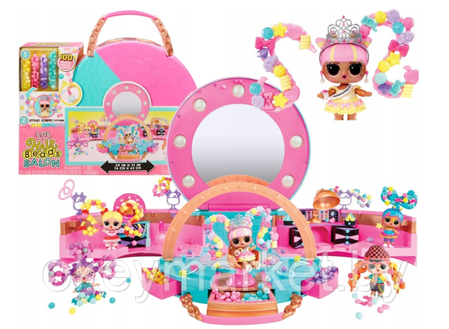 Вместе с коллекцией кукол LOL Surprise Hair Beads компания MGA в 2024 году также выпустила и новый игровой набор LOL Surprise Hair Beads. В нем очень много интересного, в том числе много бусин для украшения волос куколок! Целый салон-парикмахерская для увлекательных игр.