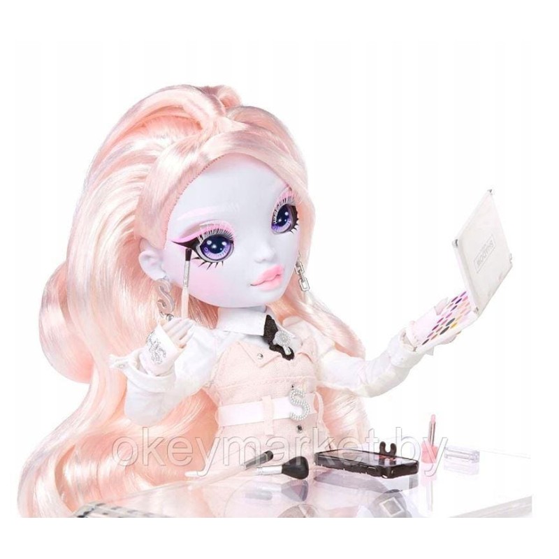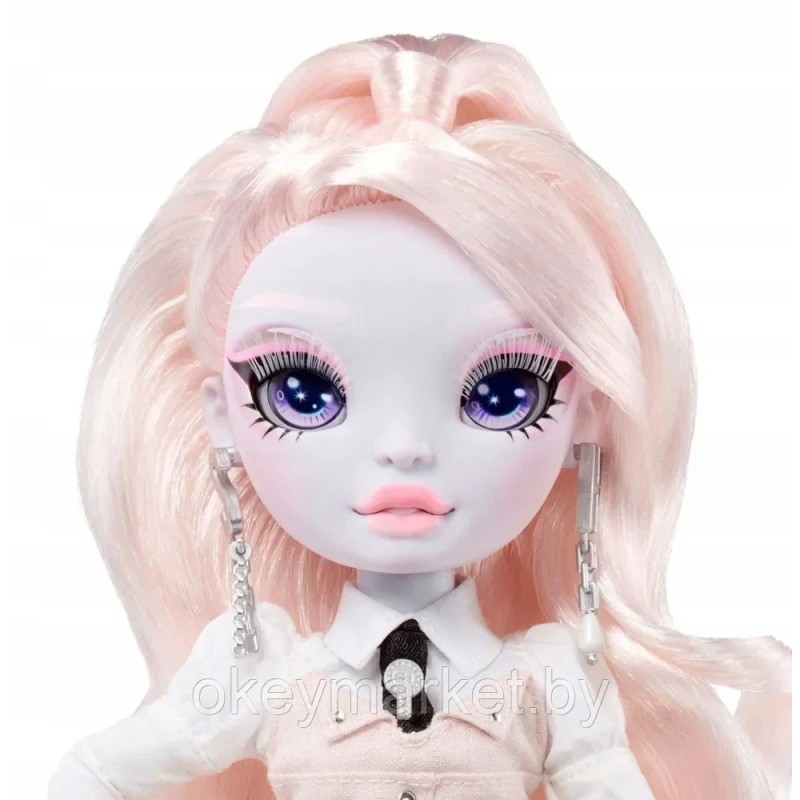 Кукла Рейнбоу Хай из серии Shadow High - Карла Шупетт (Rainbow High Shadow High Karla Choupette Pink Fashion Doll). Карла Шупетт одета в белое и нежно-розовое. У нее белые брови и ресницы! Карла Шупетт - светло-розовая с головы до пят. Она выражает свой собственный стиль в розово-белом платье с карманами по бокам и серебряными деталями, в белой рубашке и галстуке, поясе с S-образной пряжкой, перчатках, серьгах, паре сапог до колен с застежкой-молнией и забавных аксессуарах, включая веер с кисточкой.