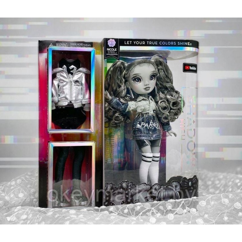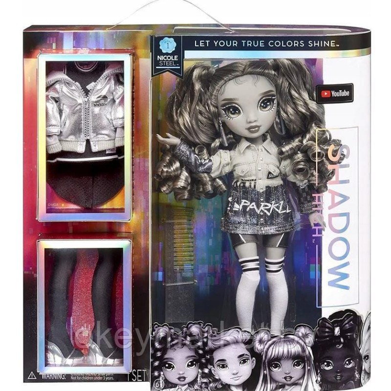 Николь Стил— ученица Шэдоу Хай. Кукла любит спорт, также она ценит модный внешний вид. Так что всем детям, которые любят активно проводить время, она понравится. Николь (Shadow High) обязательно станет их другом!Николь Стил — девушка, которая любит одеваться в серебристо-черные цвета. Николь любит спортивный стиль, что видно по ее стилю в одежде. У учеников Shadow High есть особые таланты. Николь специализируется на создании пространственных структур. В набор с куклой входит одна дополнительная укладка и расческа для расчесывания волос.