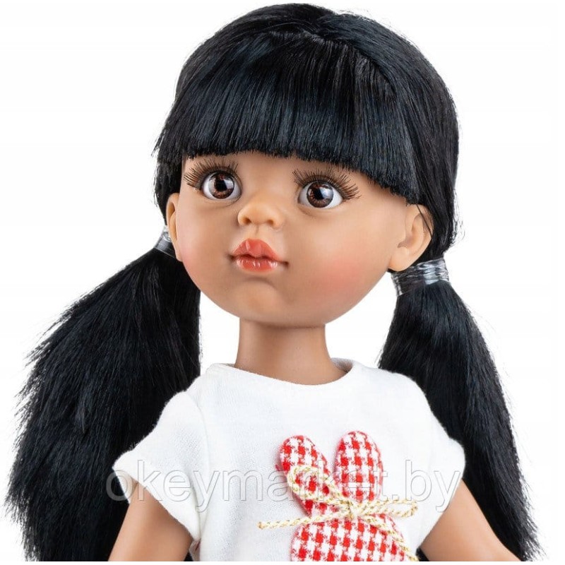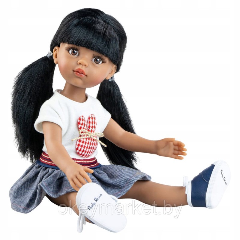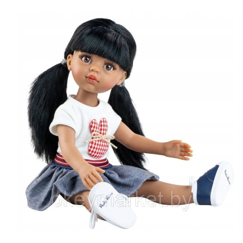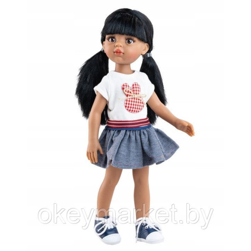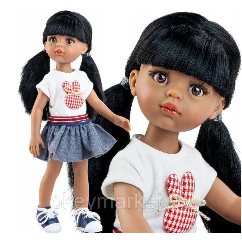 Кукла Paola Reina Кайя в футболке с зайчиком и серой юбке, 32 см из новой коллекции 2025 года. Она полностью выполнена из винила. От куклы исходит приятный легкий ванильный аромат. Благодаря пяти точкам артикуляции и мягкости винила, ее удобно переодевать. Качество подтверждено нормами безопасности EN17 ЕЭС