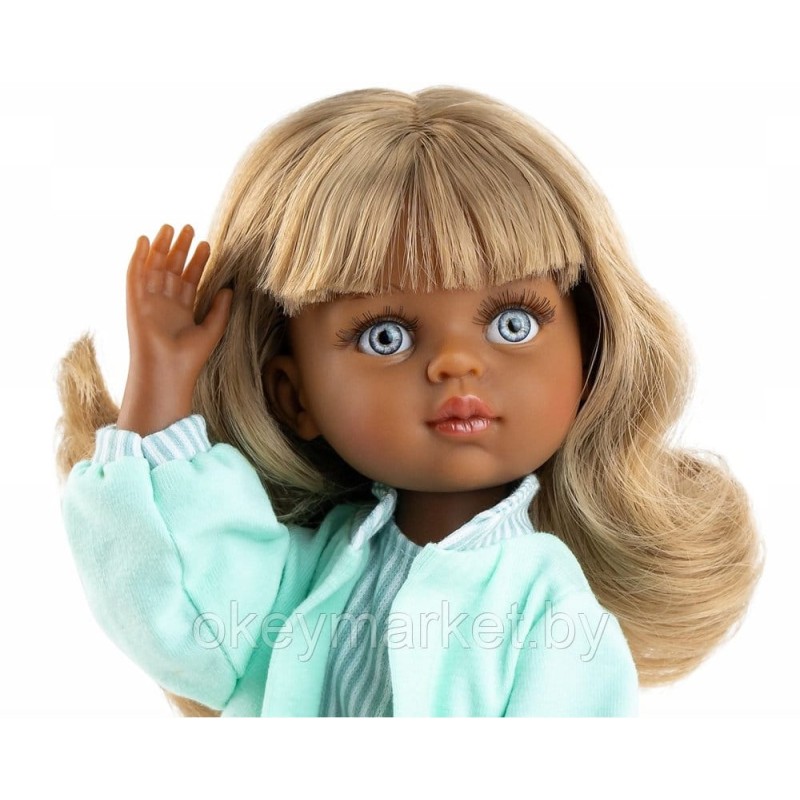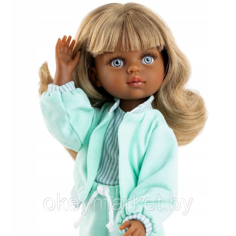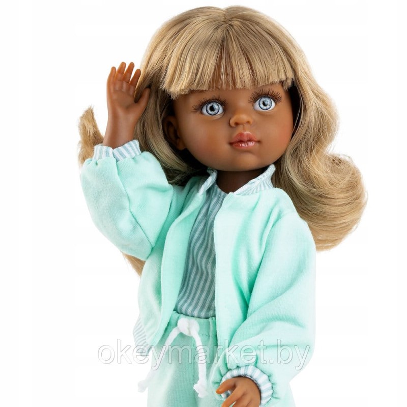 Кукла Paola Reina Кора в бирюзовом спортивном костюме, 32 см . Лицо куколки отличается тончайшей проработкой. Она полностью выполнена из винила. От куклы исходит приятный легкий ванильный аромат. Благодаря пяти точкам артикуляции и мягкости винила, ее удобно переодевать. Качество подтверждено нормами безопасности EN17 ЕЭС