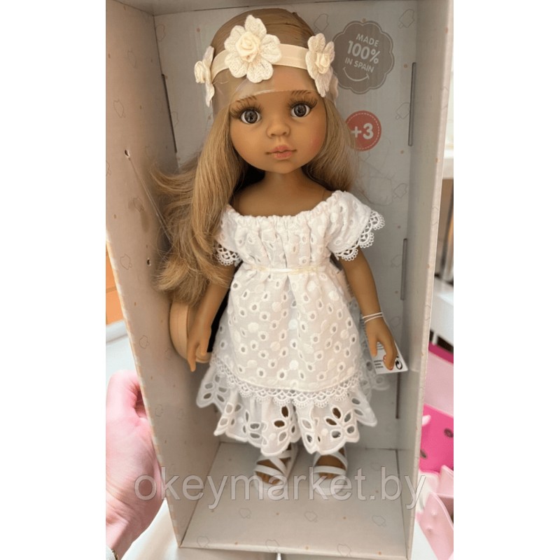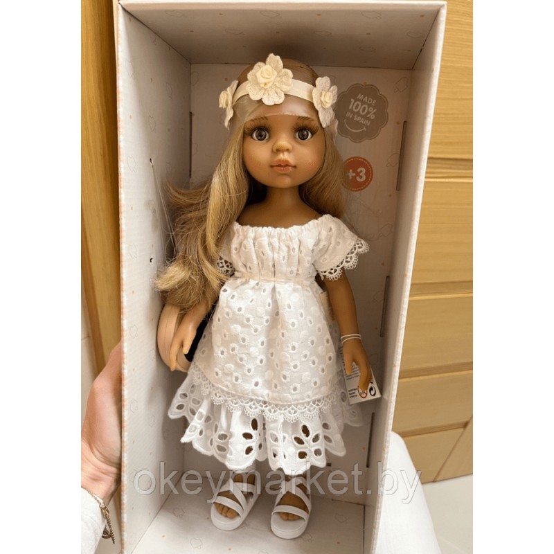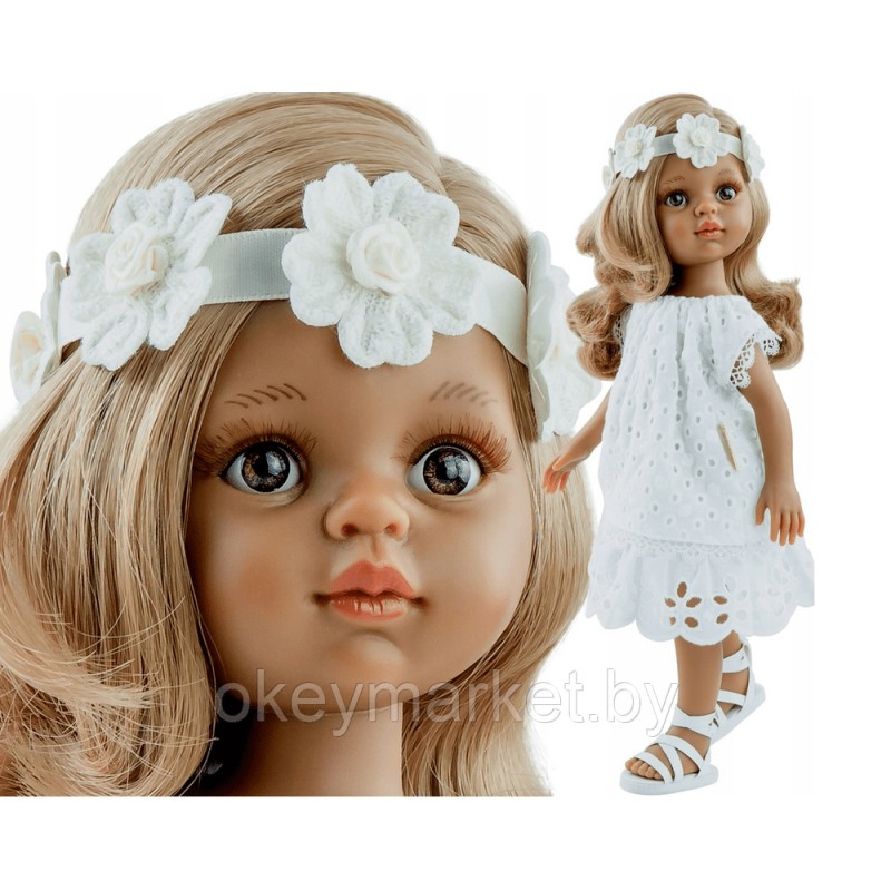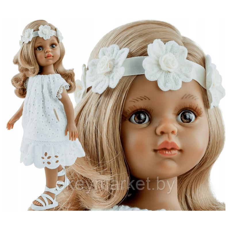 Кукла Paola Reina Лусиана в ажурном платье и повязке с цветами, 32 см. Коллекция 2022 года