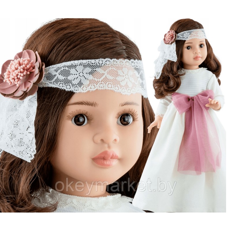 Кукла полностью изготовленная из лучшего испанского винила. Он идеально подходит для игр, расчесывания, переодевания и купания. Кукла сделана красиво и тщательно - у нее густые волосы, идеально выдержанные пропорции, красивые глаза с ресничками. Одежда, которая впечатляет своей формой и цветом, также была сшита с особой тщательностью.