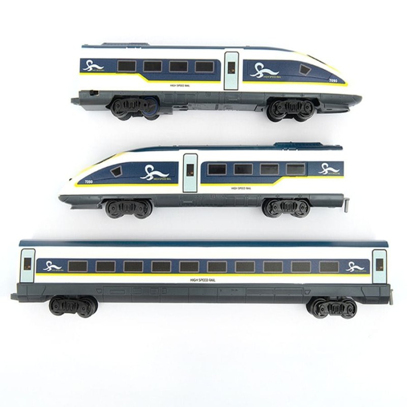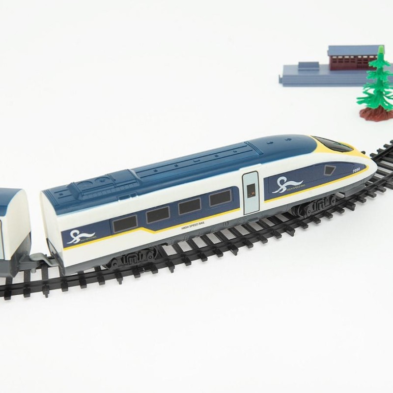 • Комплект состоит из Локомотива с вагонами, мчащегося по длинным путям.