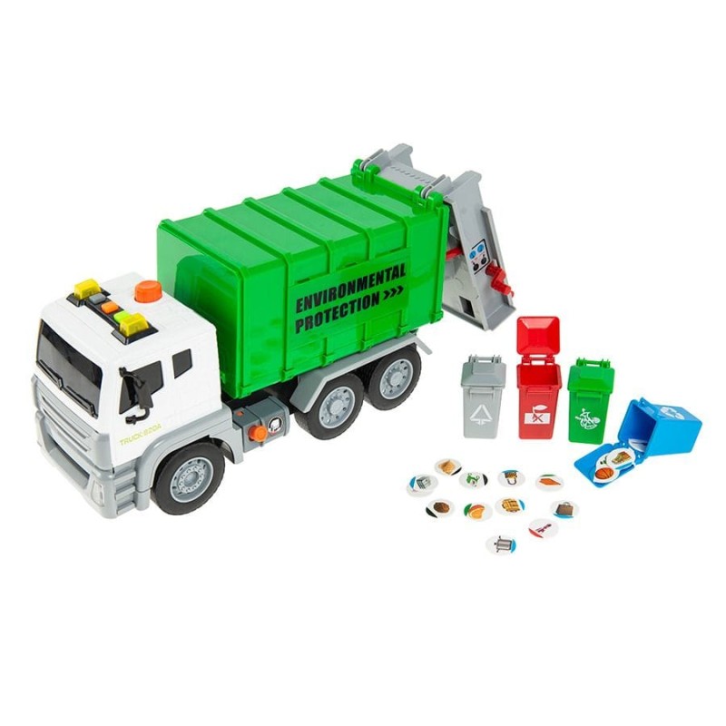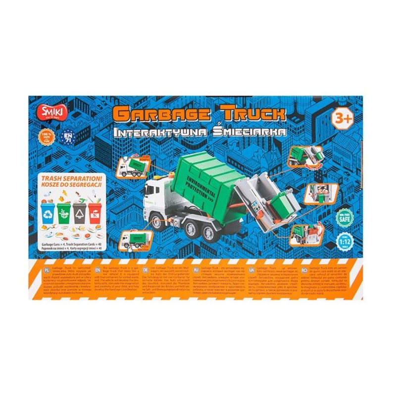 • Городской мусоровоз Smiki с открывающимся клапаном и корзинами для сортировки это идеальная идея для игры для любого ребенка.