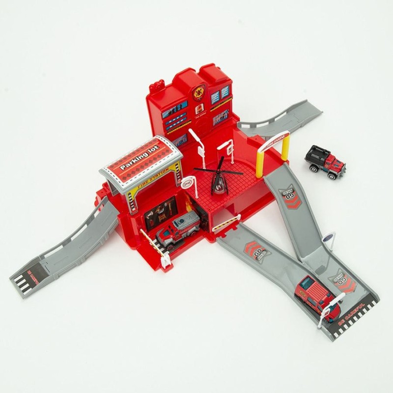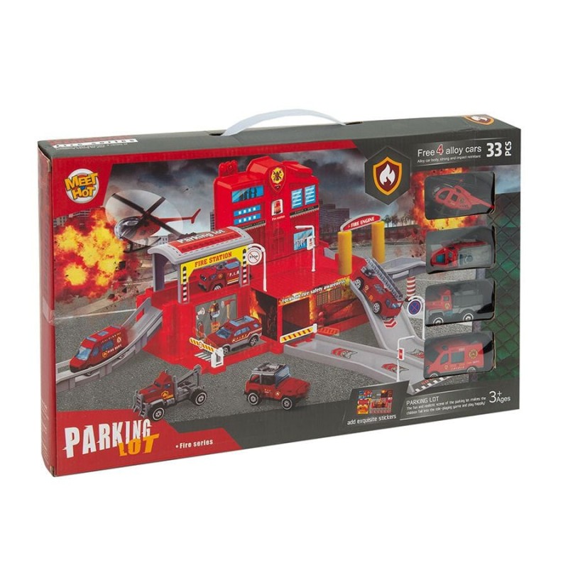 • В комплекте 33 предмета: гараж и 4 автомобиля.