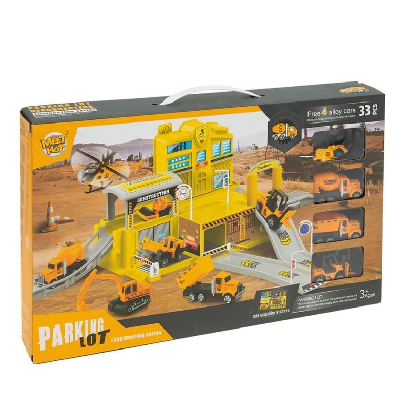 • В комплекте 33 элемента: парковка и 4 строительных автомобиля.