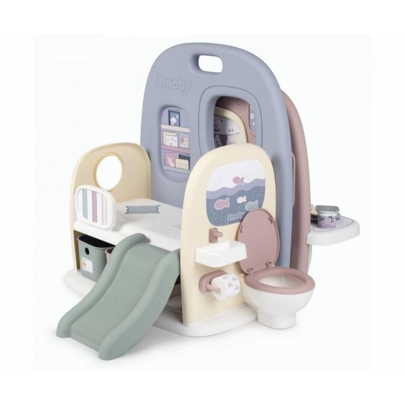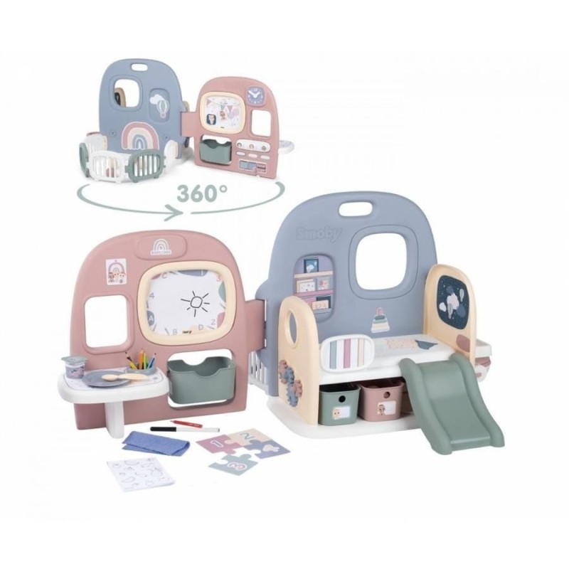 • Игровой уголок 5в1 Smoby Baby Care двусторонний и многофункциональный. Объединяет до 5 игровых площадок в одном продукте