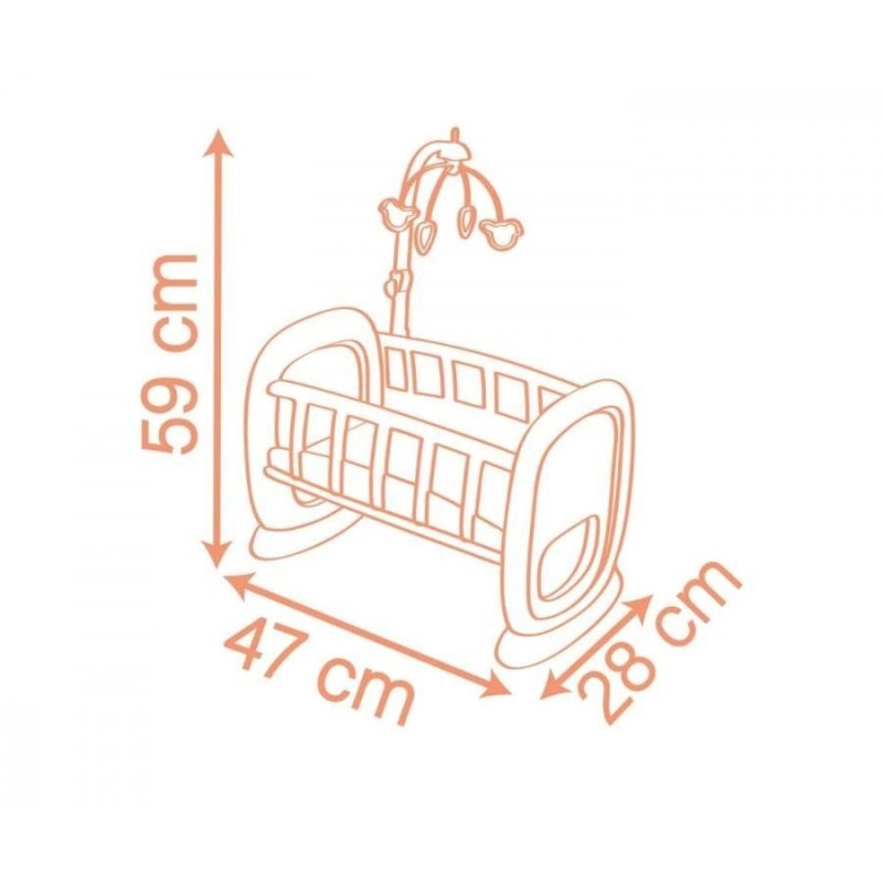 • Малыш свободно уложит своего малыша длиной до 42 см и уложит его спать, ему поможет в этом милая карусель на оголовье, в которой есть висящие элементы