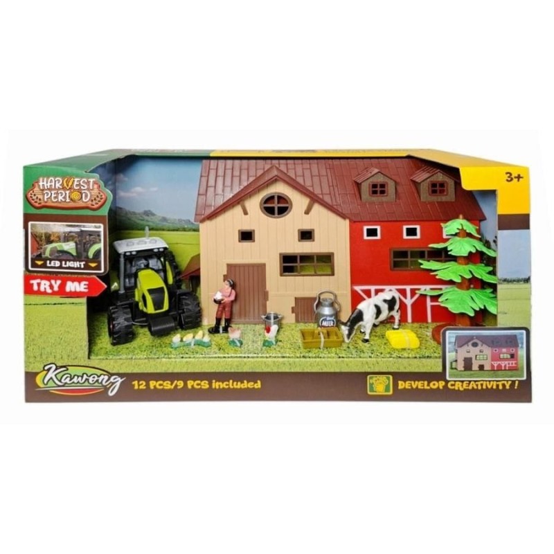 • Набор фермы с хозяйственным зданием, трактором, животными и фигурой фермера