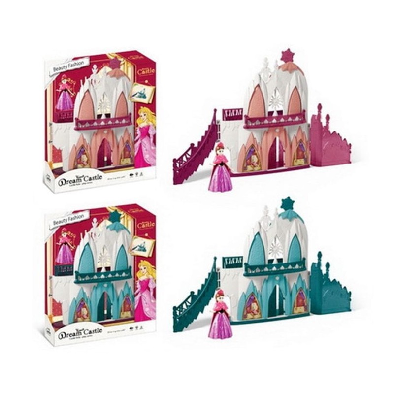 Дворец для игр для маленьких девочек. В комплект входит m.in.: кукла, кресло, стульчик, стол свеча. Над входной дверью замка находится кнопка, при нажатии на которую игрушка издает звуки и светится разноцветными огнями. Игрушка работает на батареях типа AG13. Батареи находятся в игрушке. Продукт для детей от 3 лет. Продукт поставляется в нескольких цветовых вариантах. Примечание: товар отправляется случайным образом.