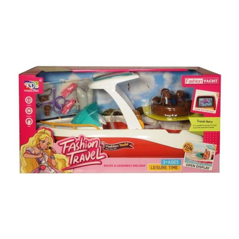 Отныне игра с любимыми девочками куклами станет еще более увлекательной. Куклы я смогу отправиться в удивительные и авантюрные морские экспедиции на этой стильной яхте. К яхте также были прикреплены аксессуары для куклы, такие как камера, маска, ласты, а также собачки в понтоне. Продукт для детей от 3 лет. Игрушка упакована в картонную упаковку.