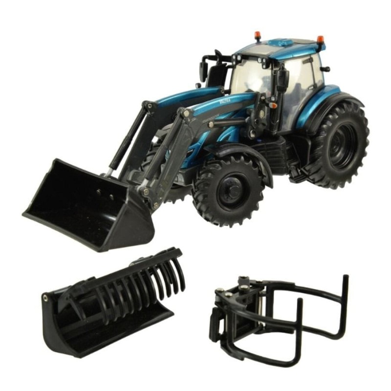 Коллекционная модель трактора Valtra T 234 с погрузчиком от компании Britains была детализирована благодаря использованию металлических деталей и пластиковых деталей.