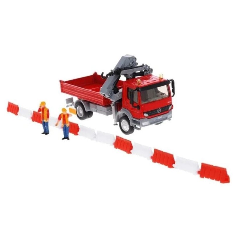 Модель Mercedes Atego с поворотным краном изготовлена из металлических и пластиковых элементов в масштабе 1: 50 с сохранением деталей машины. Оснащен подвижным поворотным краном и подвижным самосвалом со стабилизатором. Благодаря прочной конструкции и резиновым колесам модель свободно перемещается по различным поверхностям.