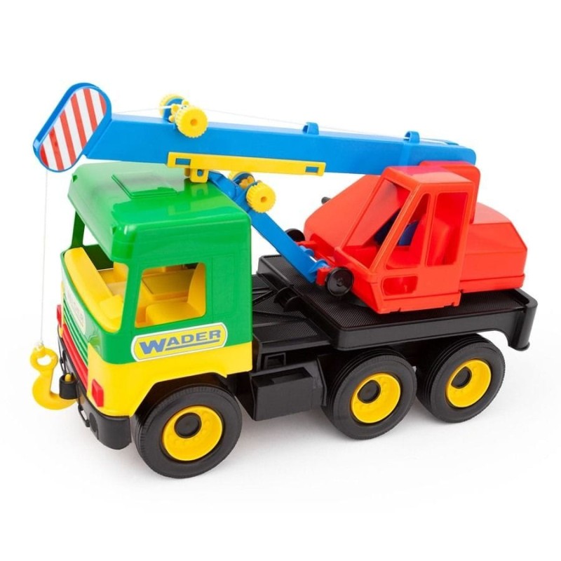 Средний грузовик кран-это функциональная детская игрушка, которая имитирует настоящий кран, используемый на строительных площадках.