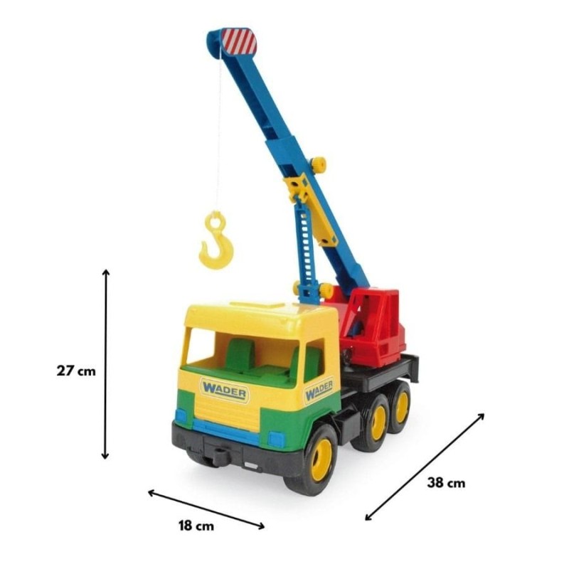 Игрушка изготовлена из прочного пластика, стойкого к интенсивному использованию, поэтому она идеально подходит как для дома, так и для игр на улице. Кран имеет компактную длину 43 см, что делает его удобным, а его форма и детали удобны для детских рук.